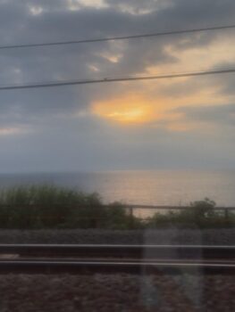 起きて窓の外を見ると、瀬戸内では見ることが難しいきれいな水平線が見えました🌅